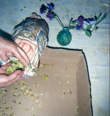 The drying hops are shown on the left, in